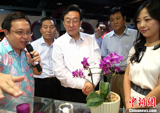 6月20日,河南省长郭庚茂率领“中原经济区合作之旅---走进台湾”参访团在台南市“兰花生物科技园”考察。中新社发 赵振清 摄