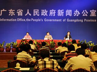 广东省政府新闻办副主任梁珊主持论坛新闻发布会