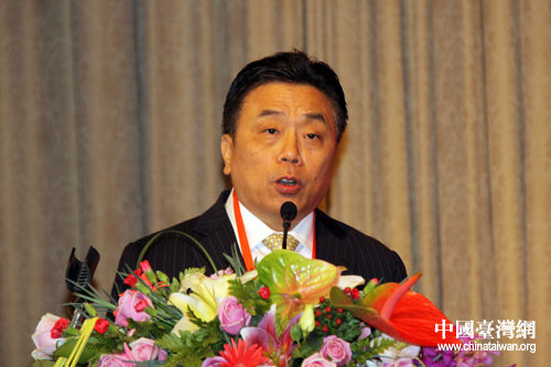 全国台企联会长郭山辉在论坛开幕式上致辞。(中国台湾网 王伟 摄)