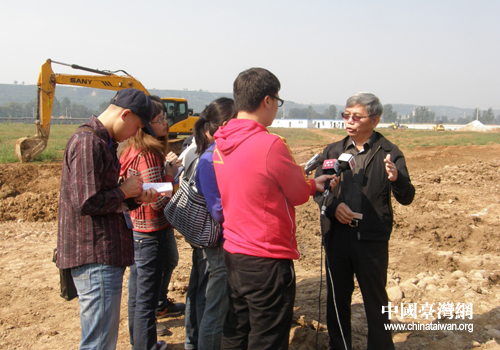 台企巨子新能源科技有限公司总经理李正文在项目工地接受记者团采访。(图片来源:洛阳市台办)