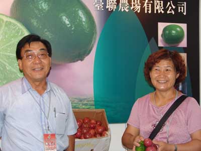 台联农场股份有限公司的徐义达董事长向记者介绍说,他此次带来的水果是台湾特色水果,公司现在在广东已经有三个农场,现在他还打算在海南和福建、江西等地勘查土地,希望扩大规模,将来要将自己生产的水果产品进行深加工,形成连锁产业,因为从自己的投资经验来看,在大陆的投资前景无限好,也有很多优惠政策,此次他的妻子特地从台湾赶来协助他做好这个展览。