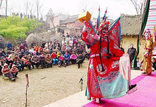 近日,随着传统宛梆戏独有的高亢、激越唱腔和委婉、清丽的音色,我们走进了河南省南阳市内乡县马山口镇白庙村的山洼洼。这里临时搭起的戏台正在上演《夜审潘洪》,看戏的多是老人和孩子,年轻人早已进城打工去了。宛梆自明末清初由东路秦腔传入南阳后,与楚乐和当地民歌小调、民间说唱结合演变成一个戏曲种类,至今已有三百多年历史,比京剧、豫剧、曲剧更古老。宛梆在南阳及周边地区很受群众欢迎。虽然一场戏的报酬只有900元,台上演员一招一式也那么认真。但面对社会的变革,人们担心宛梆会不会也有消失的那一天。(记者 高腾 摄)