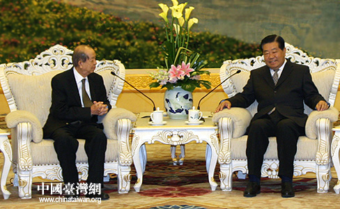 中国台湾网9月15日北京消息 今天下午,中共中央政治局常委、全国政协主席贾庆林在北京人民大会堂会见了台湾奇美文化基金会董事长许文龙一行。