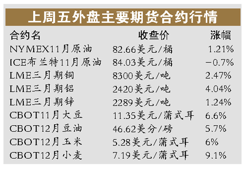 上周五,工业品期货受新一轮定量宽松政策将实施预期的影响出现普涨,其中国际铝价当日涨幅高达4%。