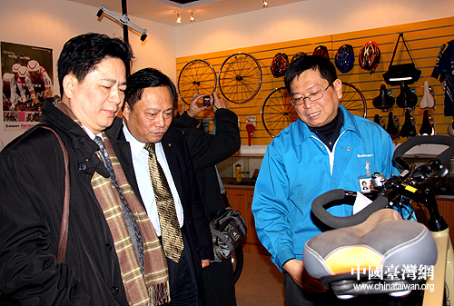 13日—14日,全国人大台湾团代表、全国政协台联组委员等一行在长三角地区进行调研,图为全国台联会长梁国扬(中)在昆山捷安特有限公司考察(李徽 摄)
