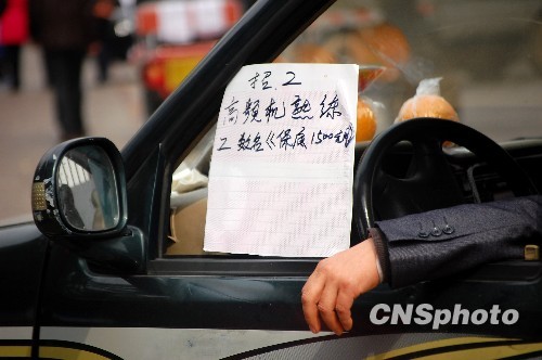 浙江省义乌市一些企业老板开着小轿车到劳务市场招工,如遇满意的员工,当即开车接回工厂上班。中新社发 许康平 摄
