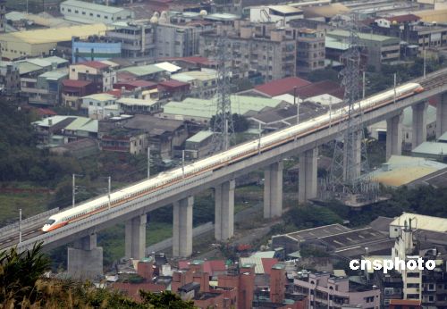 台湾高速铁路一列车在台北县境内通过。 中新社发 张炜 摄
