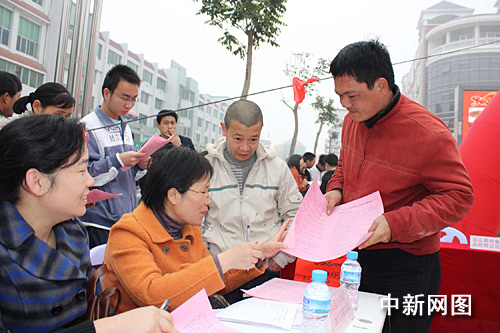 “这次用工洽谈会除了签约率高外,另一个特点就是台资企业多。”佘再炎局长说,“今年全县共有35个用工单位提供2030个工作岗位供求职者选择,其中东兴水产品加工有限公司、椿益塑料胶制品有限公司等台资企业就有20多家,占用工单位的60%以上。” |