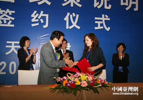 天津市企业与台湾工业总会签署赴台投资意向书(图片来源:天津市台办) |