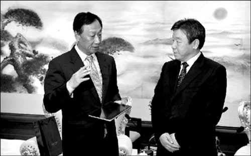 随后,二人又畅谈了10多分钟。之后,郭台铭吃了一顿简餐就匆忙回到会议室。 |