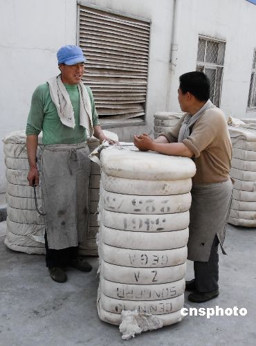 5月13日,山东某纺织企业工人在搬运进口棉进车间。据海关统计,4月份我国进口棉花14.6万吨,同比减少44%。2008年9月1日至2009年4月30日,我国共进口棉花88.5万吨,同比减少70.2万吨,下降44.2%。据山东纺织企业介绍,目前国家发放的棉花进口配额不能满足纺织企业需求。 中新社发 草木 摄