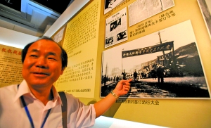 台湾嘉宾邵铭煌介绍,这张珍贵的照片是他提供的。 记者 鞠芝勤 摄