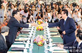 ▲6月12日上午9时许,海峡两岸关系协会会长陈云林与海峡交流基金会董事长江丙坤会谈在北京钓鱼台国宾馆开始举行。这是时隔9年多后两会领导人再度对话。