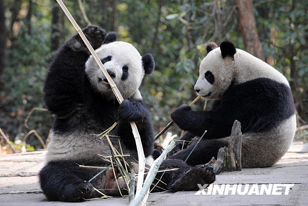 12月11日,大熊猫“团团”“圆圆”正在进食。当日,来自海峡两岸数十家媒体的记者来到中国保护大熊猫研究中心雅安碧峰峡基地,关注即将赴台的大熊猫“团团”“圆圆”,了解它们的近况。目前,大熊猫“团团”“圆圆”的体重已分别达到112公斤和114公斤,两只大熊猫每天要吃50公斤竹子。新华社记者陈燮摄