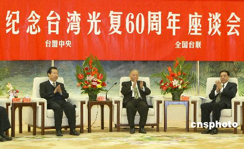台盟中央、全国台联23日在人民大会堂台湾厅举行座谈会,隆重纪念台湾光复六十周年。