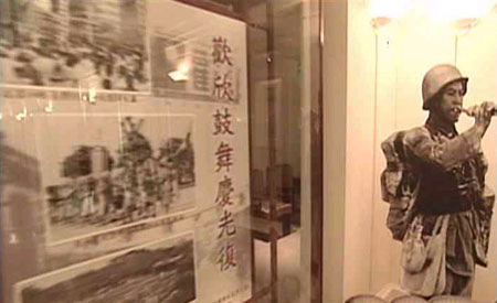 解 说:这是台湾地区的国民党总部大楼,在这栋楼里的7层正在举行抗战胜利60周年和台湾光复的纪念展。这个名为“苦难的岁月,光荣的胜利”的纪念展从今年3月份就已经开始展出了。今年7月我们的摄制组也曾在这里向大家介绍过这个纪念展。