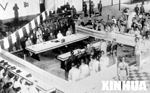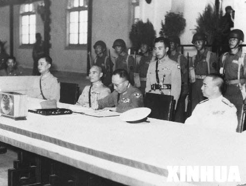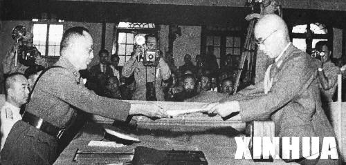 在此之前的8月15日,日本裕仁天皇宣布接受盟国的《波茨坦公告》,无条件投降。9月2日,在泊于东京湾的美国军舰“密苏里”号上举行了日本投降签字仪式。而7天后的9月9日,专门举行中国战区侵华日军投降签字仪式。