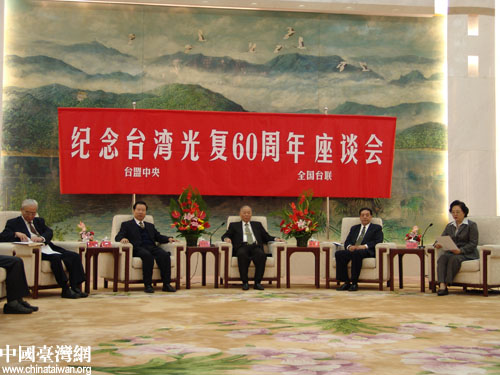 由台盟中央、全国台联共同举办的“纪念台湾光复60周年座谈会”在人民大会堂隆重举行