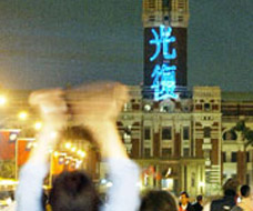 中国台湾网10月23日消息 由新党号召举办的泛蓝团结“除害平乱”晚会昨晚在台“总统府”前的凯达格兰大道隆重举行。该场晚会也是为纪念台湾光复60周年以及为泛蓝年底选举造势。国民党主席马英九以及多位泛蓝大佬参加。马英九在会上发表演讲,表示台湾人从未忘记自己是华夏子孙,并再次强调在年底选举中把“台湾赢回来”。