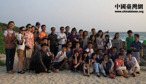 2011年4月16日,大陆高校师生参访团游览垦丁,图为在垦丁海边合影留念。(中国台湾网 杨永青 摄)