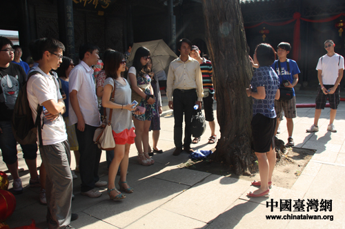 中国台湾网7月8日天津消息 7月8日下午,参加“追寻历史足迹”系列活动——燕赵之旅活动的两岸青年学生30人参观了位于天津的广东会馆。