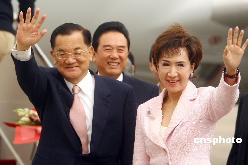 四月十七日下午,中国国民党荣誉主席连战携夫人离开北京飞往福建,开始福建的祭祖之旅,中共中央台办主任陈云林到机场送行。作者:盛佳鹏 来源:中新网 (责任编辑:清水)