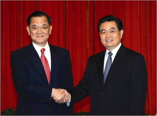 2005年4月29日,胡锦涛与连战握手,实现了两党主要领导人历史性的会见,标志着两党的交往进入了新的发展阶段。