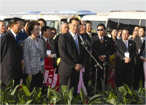 Lian Zhan led his delegation to Nanjing on April 26, 2005. In the airport, he delivered a speech, claiming that “It is the first historical step.”