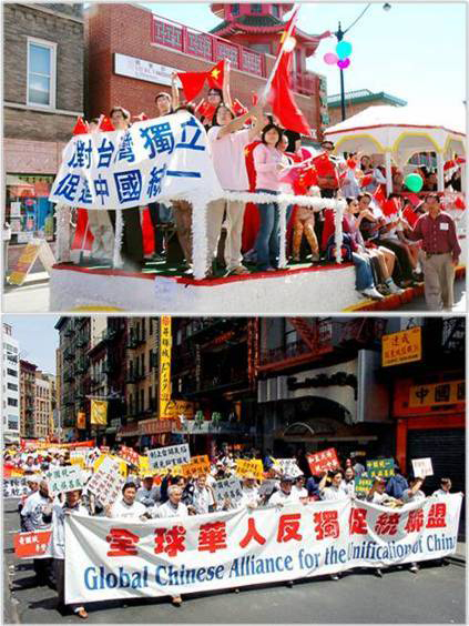 The overseas Chinese in New York held a great procession against Taiwan Independence and for reunification.