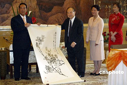 2005年5月8日,海峡两岸关系协会会长汪道涵在上海会见了亲民党主席宋楚瑜,并向其赠送玉兰花图。