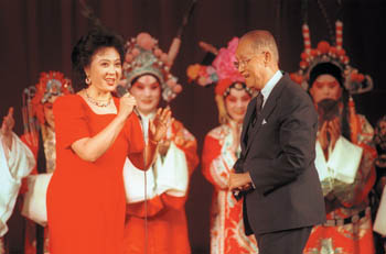 1998年10月17日,辜振甫在北京的京剧晚会上唱京剧