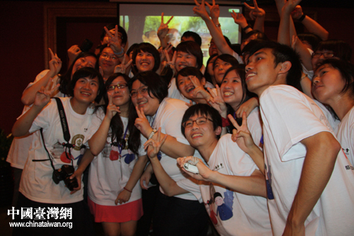 联欢会结束,两岸学生开心的合影留念。(中国台湾网 孟雅诗 摄)
