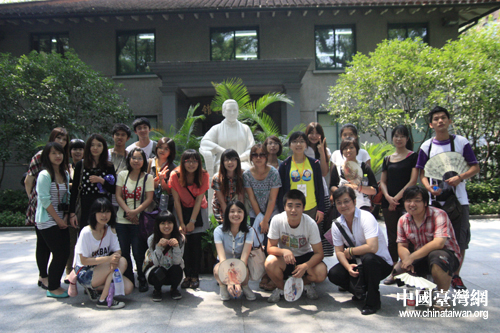 8月14日,由中国宋庆龄基金会和台湾“十大杰出青年基金会”共同组织的“台湾青年学生交流团”活动开始参访上海。图为交流团在上海宋庆龄故居雕像前合影留念。(中国台湾网 孟雅诗 摄)