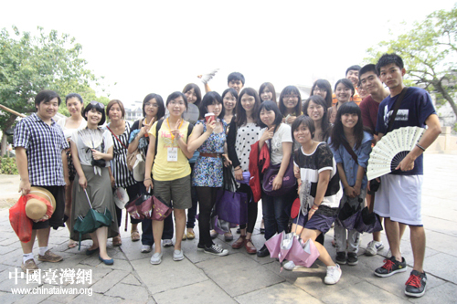 8月13日,由宋庆龄基金会和台湾“十大杰出青年基金会”共同组织的“台湾青年学生交流团”一行游览苏州,图为团员在同里古镇合影留念。(中国台湾网 孟雅诗 摄)