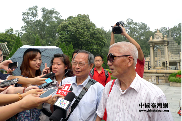 同盟会会员温生才之孙温国杰(左)向记者讲述先辈起义经过(中国台湾网 李徽 摄)