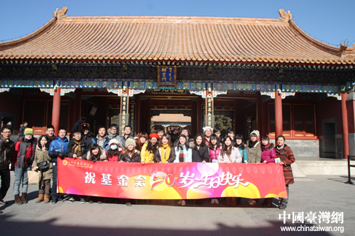志愿者和台湾青年游览颐和园,并祝中国宋庆龄基金会30岁生日快乐!
