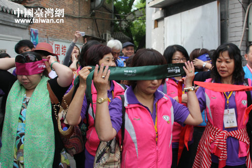 台湾参访团成员蒙上眼睛准备开始体验。(中国台湾网 郭莹莹 摄)