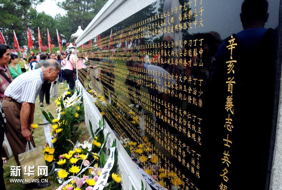 9月28日,一名老者在纪念墙前缅怀先辈。当日,“辛亥革命百年纪念墙”在武汉市黄陂区竣工揭幕。这是全国第一家由辛亥志士后裔、民间爱心人士兴建的“辛亥革命百年纪念墙”。新华社记者皮曙初摄