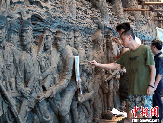 7月6日,为了迎接辛亥革命百年,大型群雕《首义烽火》已完成泥塑阶段。图为《首义烽火》展现的生动画面。中新社发 张畅 摄