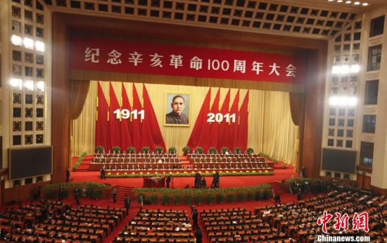 10月9日,纪念辛亥革命100周年大会在北京人民大会堂举行。中新社发 盛佳鹏 摄