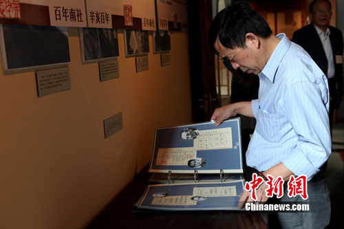 中新网苏州10月8日电(李克祥)8日,《南社百位辛亥人物与苏州·山塘》纪念展在中国南社纪念馆开幕。这是国内外首次举办的“辛亥革命与南社”展览,通过展出大批南社人物的遗物、生平事迹等,翔实的展现出南社人物发起了“辛亥先声”,是“辛亥革命”取得成功不可或缺的一支力量。