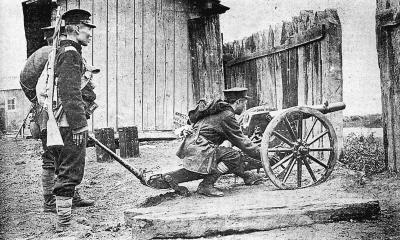 图为书中图片:汉口革命军炮兵在射击。