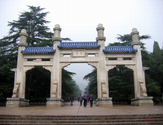 沿墓道前行为陵门,以青色的琉璃瓦为顶,门额上为孙中山的手迹“天下为公”四个大字。用青色的琉璃瓦有其一定的含意,青色象征苍天,青色琉璃瓦乃含天下为公之意。