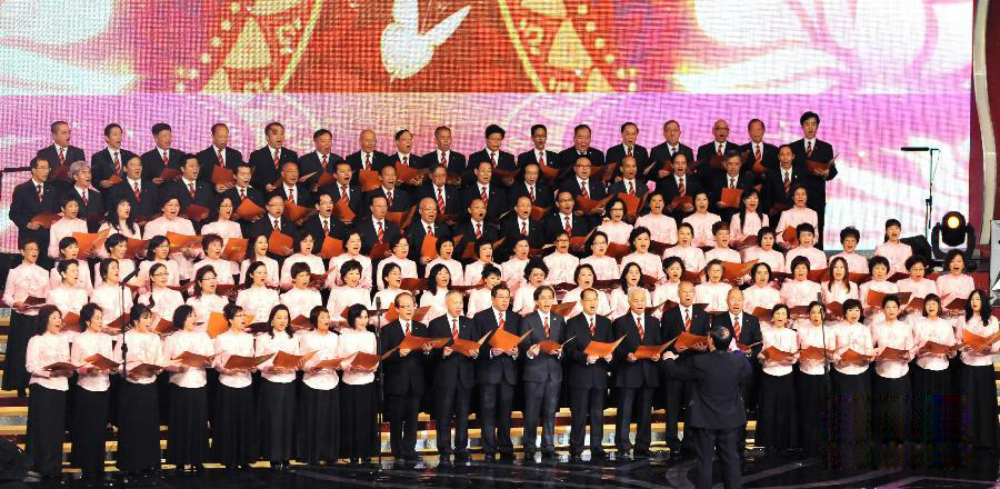 8月13日,中华总商会合唱团在文艺汇演上演出“走向复兴”