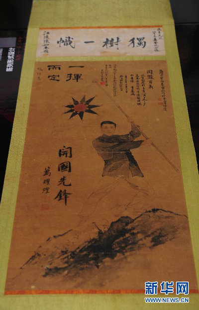 李志新捐赠的辛亥志士李次生高举十八星旗的《独树一帜》