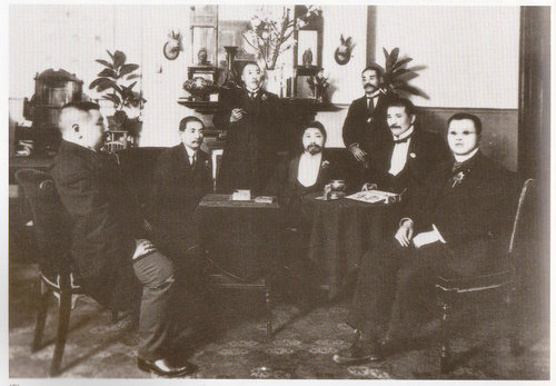 1911年12月26日,孙中山在上海召开同盟会重要干部会议,商讨组织临时政府方案。图为孙中山(左二)与黄兴(前右三)等人合影
