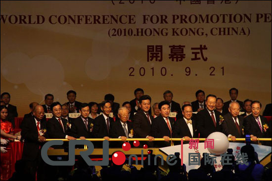 香港特区行政长官曾荫权在大会发言中表示,香港回归祖国13年来,已经用无数事实向世界证明了“一国两制”是妥善处理和解决历史遗留问题的良方妙策。他相信,香港顺利回归的成功经验,也能为妥善解决台湾问题提供实践的范例。