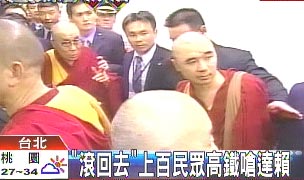 达赖深夜抵达台湾 上百民众高呼“滚回去”(图)