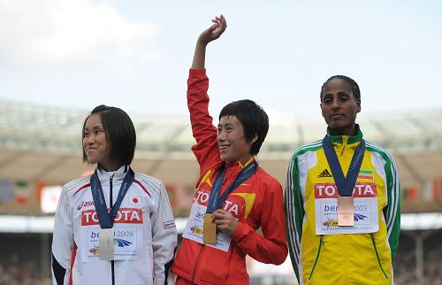 柏林8月23日消息,2009年世界田径锦标赛在最后一日传来好消息,中国21岁的女子马拉松选手白雪以2小时25分15秒夺得金牌,这是中国选手在本次世锦赛上的第一枚也是唯一一枚金牌,同时也是中国马拉松在世锦赛历史上的首枚金牌。日本选手尾崎好美获得亚军,埃塞俄比亚的莫吉亚获铜牌,老将周春秀获得第四,成绩为2小时25分39秒。