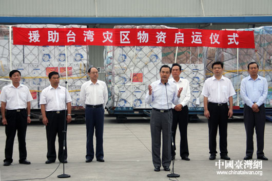 今天,我和海协会陈云林会长、大陆民政、民航、北京市以及国航集团的同仁们一起,在这里举行援助台湾灾区物资启运仪式。首先,我谨代表中共中央台办、国务院台办以及海协会再次向台湾灾区的同胞们表示衷心的慰问,向在灾害中不幸罹难的台湾乡亲致以深切的哀悼。